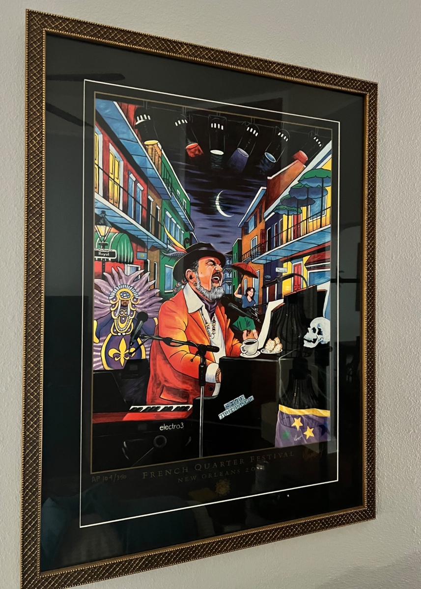 OBOOfficial 2014 French Quarter Festival print, featuring Dr John, signed & framed. Dimensions 25 x 34
