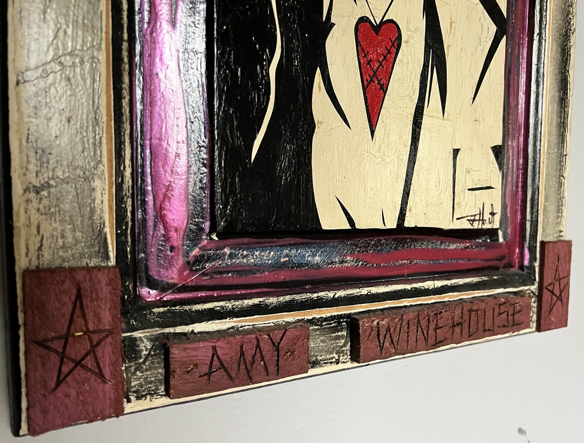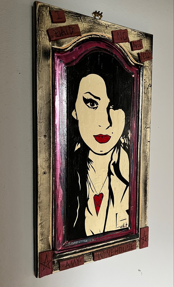 $100.00 25% off OBOOriginal artwork by Jeremy Hebert of New Orleans. Amy Winehouse painted on a reclaimed kitchen cabinet door. Dimensions approx 15 x 27.
