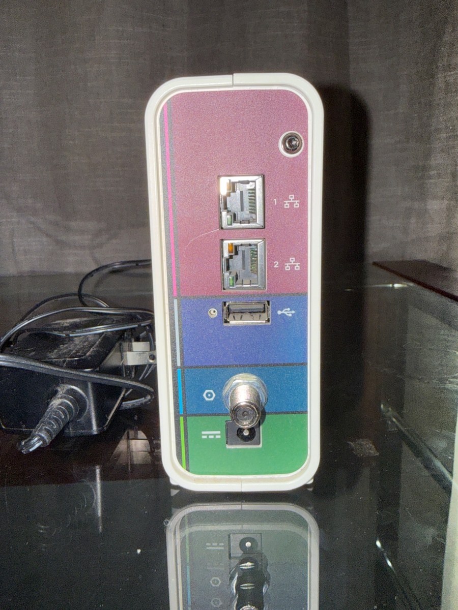 This Arris modem router is in good condition, perfect for reliable internet connectivity. It features multiple ports for versatile connectivity options. Ideal for home or office use, ensuring fast and stable internet speeds. Comes with power and coaxial cables as shown.