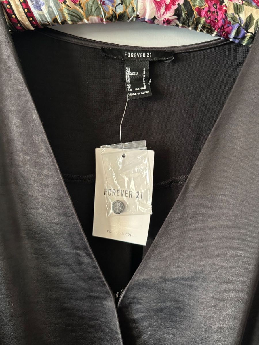 $10.00 20% off OBOThis piece is new with tags & only ever been tried on. The blacks aren't a direct match but it's not bothersome or as drastic as the cover photo makes it seem, I included a few closeups to show it better. It's a Size S, snap closure for your peeing convenience, plunging neckline with hook closure and long flowy sleeves that button at the cuff. Tags are still attached (original sale price $29).