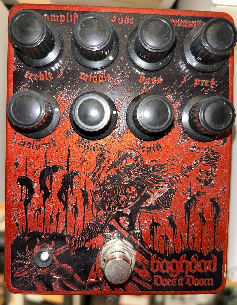 Badass distortion + amp simulation from Does It Doom and named after the High on Fire song of the same name. From DID: “ Baghdad stands as tribute to Matt Pike’s early-era High on Fire guitar tone, capturing the searing power of the High Gain Channel from a Soldano SP77 preamp driving a bludgeoning Green Matamp GT120 amplifier.” More Details: https://doesitdoom.com/product/baghdad/
