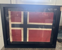 Framed vintage flag Black frame corner damaged in move. Could be repaired with wood filler or furniture marker. Flag and mounting still in excellent condition. 42.5 x 34 cm $10 obo