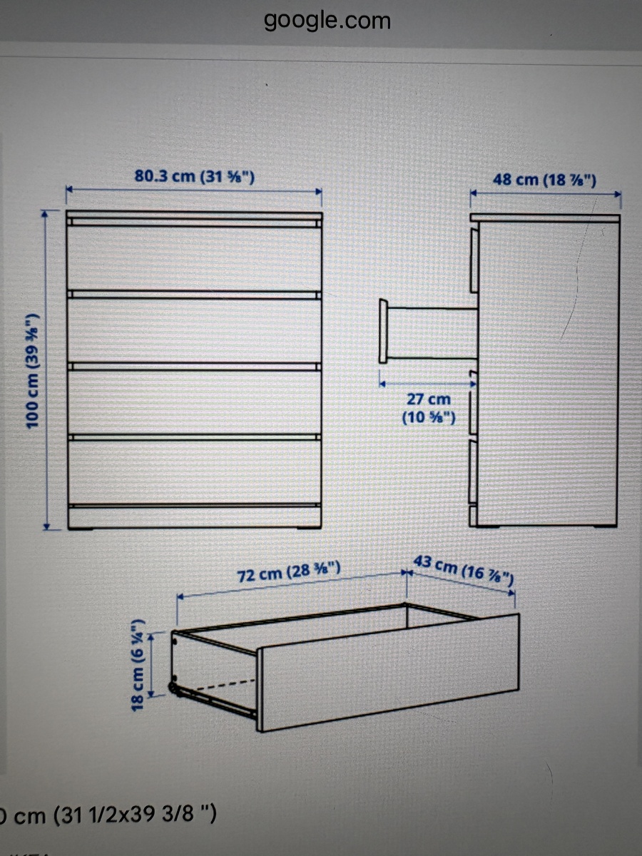 IKEA malm 4-drawer dresser, no scratches or dings, drawers work great. Dimensions in photos.