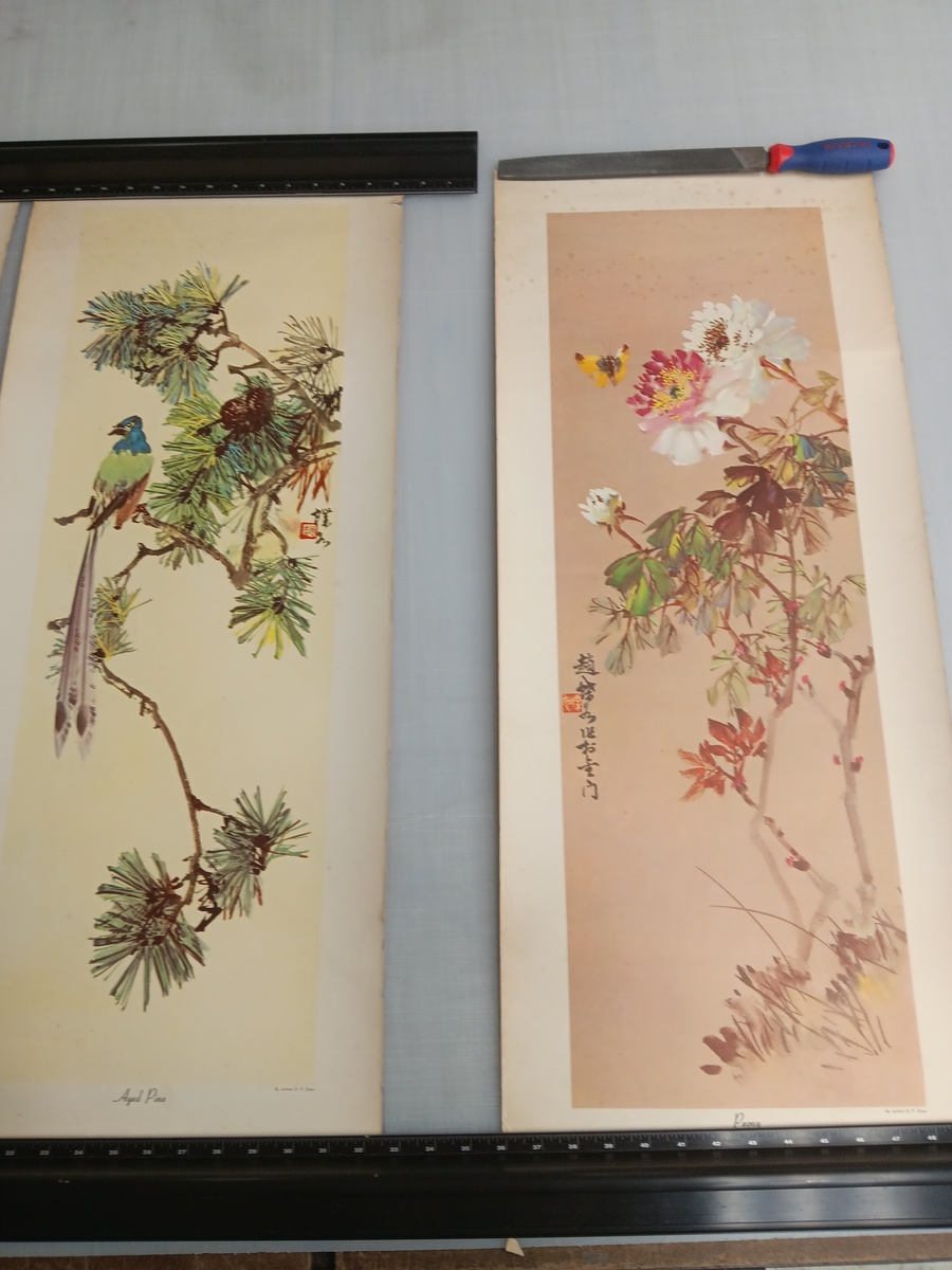 OBOset of 4 art prints by Junhon D Y Chew. They have seen better days, but haven't we all? Cool artwork featuring birds and plants. What could be better? Oh, whats that? You want a butterfly too? well the last print has a butterfly too! Booyah! Approx 34"h x 14"w