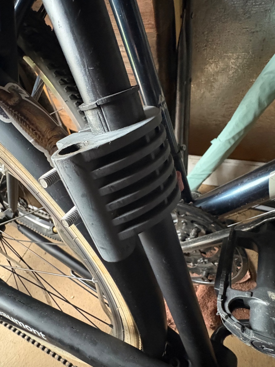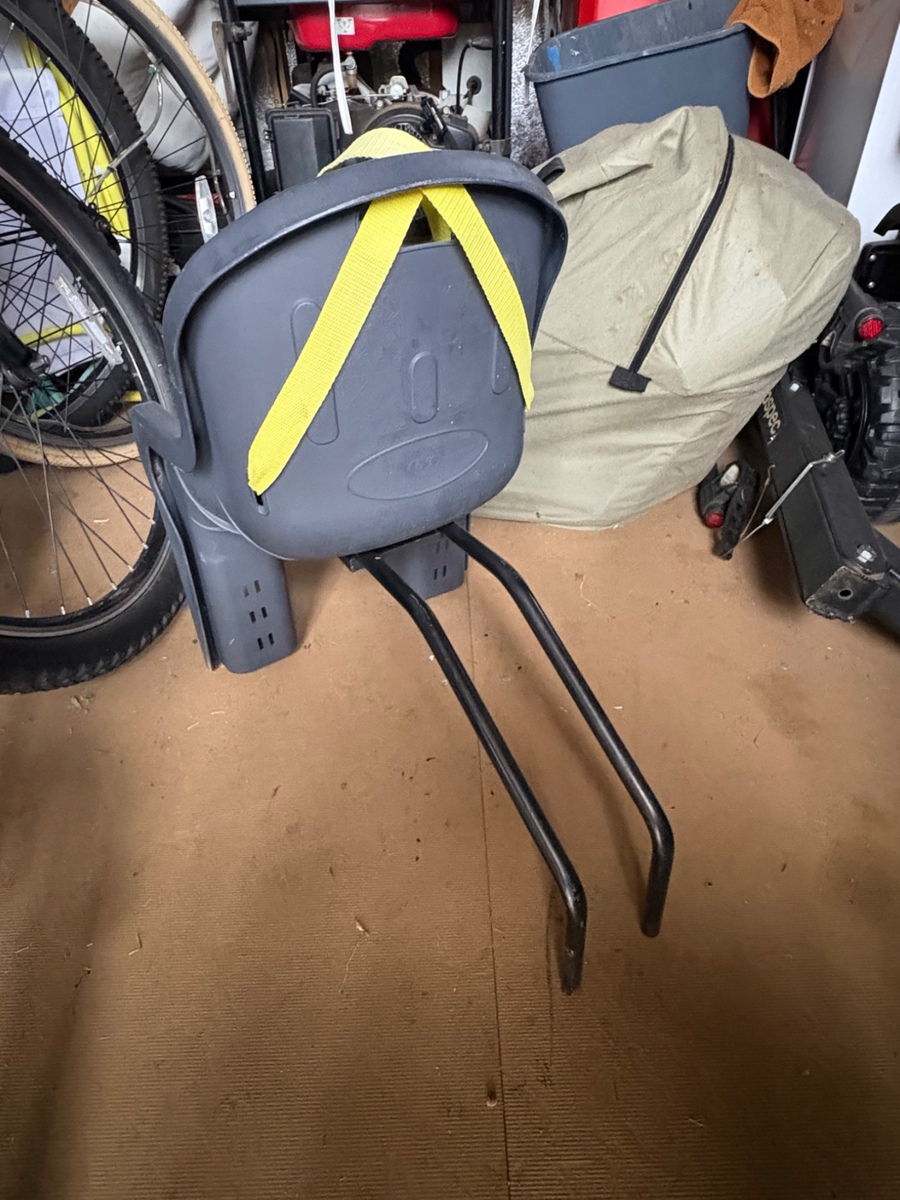 Fits between your legs. Good condition, attaches with a bracket to the center post of your bike frame.