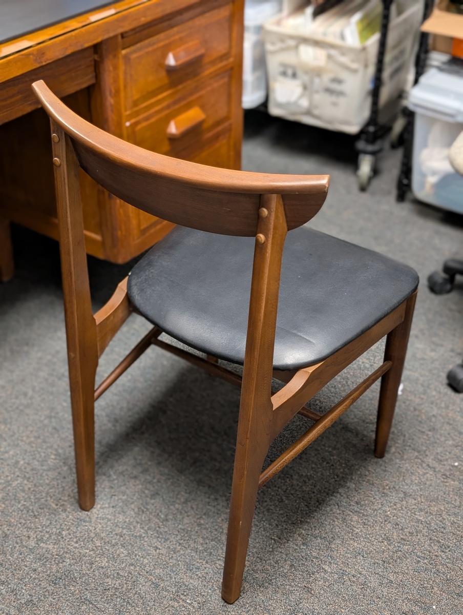 This is a "Dixie Furniture" MCM chair with a black vinyl upholstered seat. Price of $60 includes delivery anywhere in the greater New Orleans metro area. Lower prices considered for pick up.