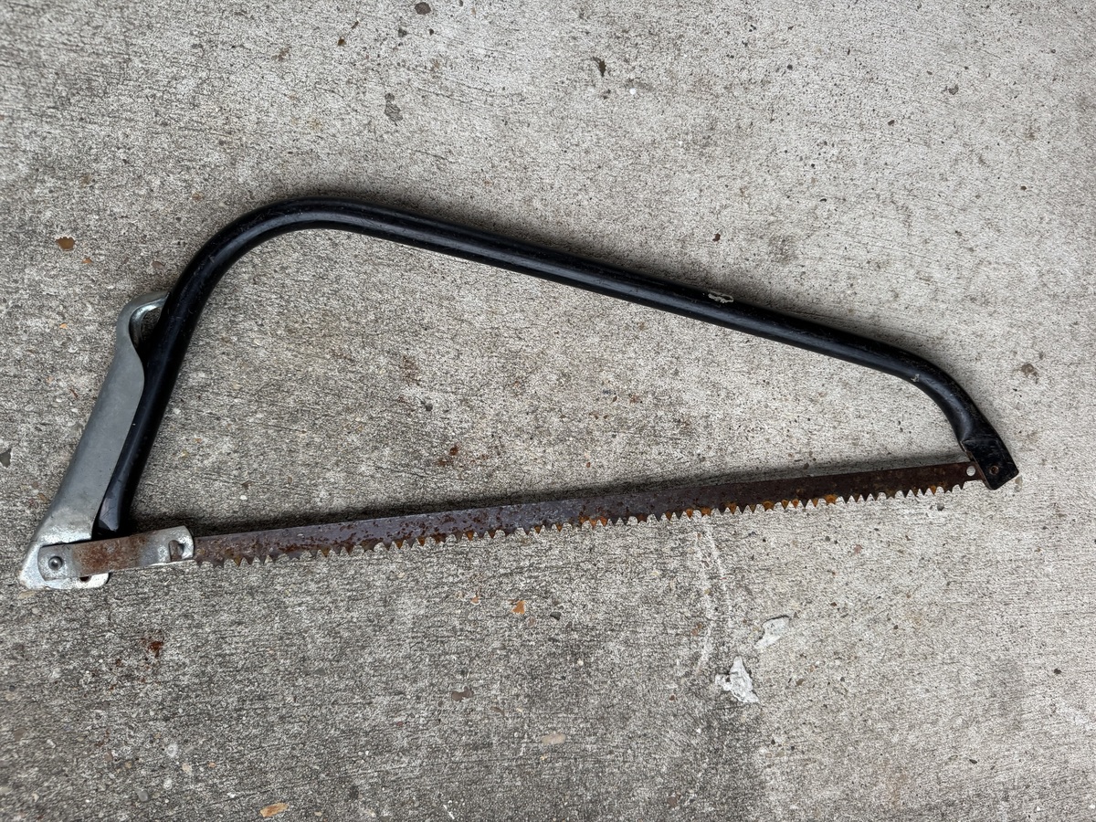 OBOThis metal hand saw is perfect for cutting through wood and light metals. It features a sturdy frame and a sharp blade, though some rust is present. Ideal for DIY projects or as an addition to your tool collection.