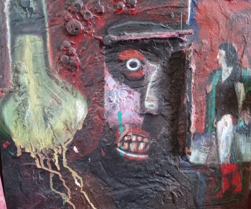 OBODark folk art, acrylic on wood. Painted iin 1987, have owned since new. 21" square. Great piece to add to your collection of folk art. Artist still working/selling for much more $$.