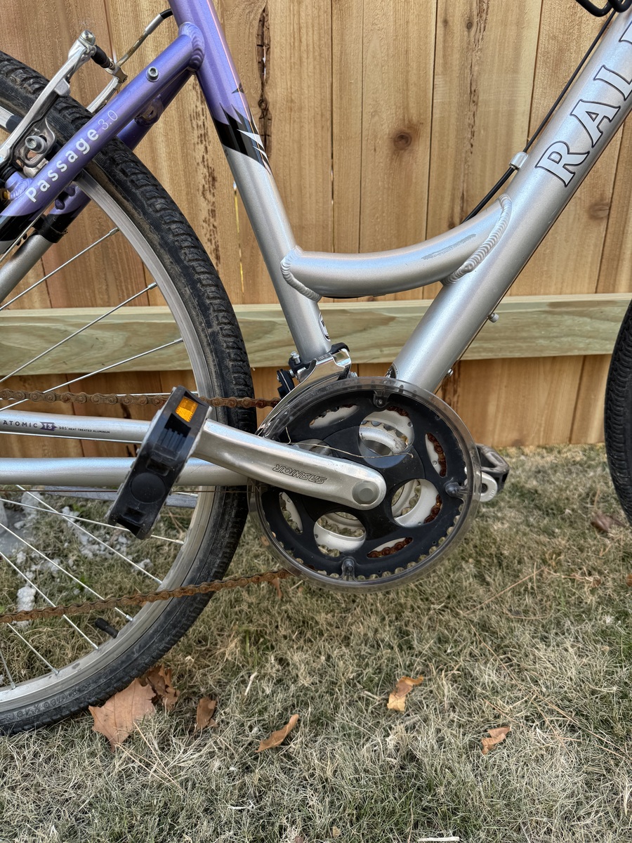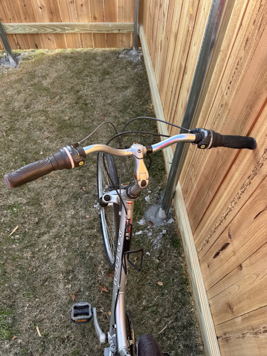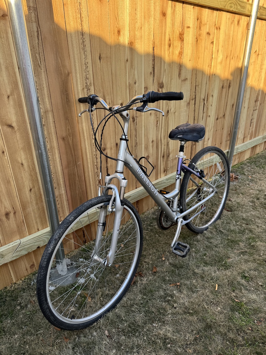 OBOThis Raleigh hybrid bike is perfect for casual rides and commuting. It features a lightweight frame, comfortable saddle, and smooth gear shifting. The bike is in excellent condition with minimal wear.