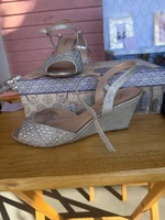 These elegant rhinestone heeled sandals are perfect for any special occasion. Featuring a classic open-toe design with adjustable ankle straps, they ensure comfort and style. The shoes are in excellent condition with minimal signs of wear.