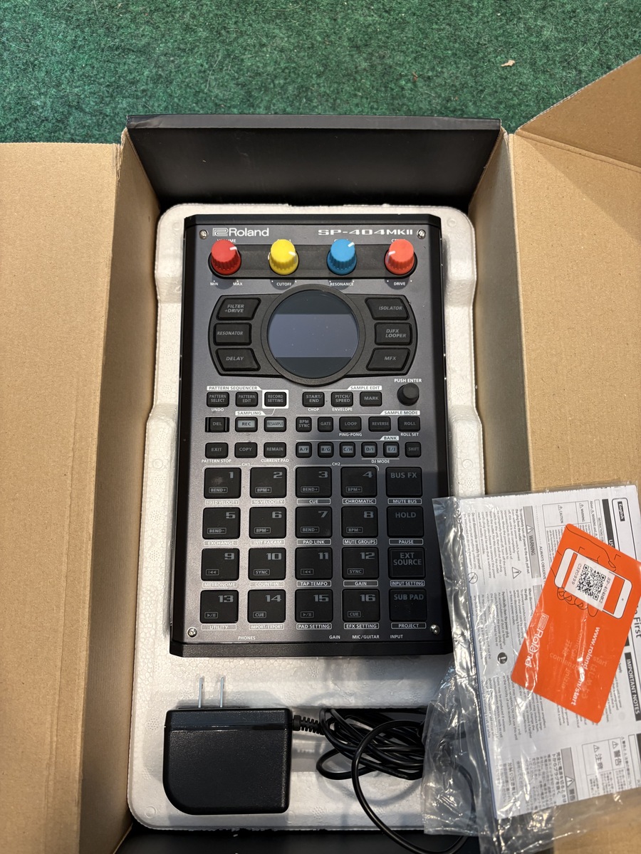 OBOThis Roland SP-404MKII sampler is in its original packaging, and it's in excellent condition. It's really great for chopping up samples and finger-drumming. It has a ton of effects, and is a lot of fun. The factory knobs have been replaced with the more colorful ones you see in the photos.