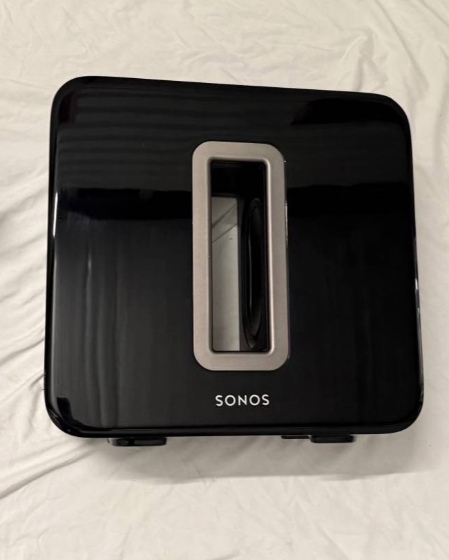 Full Surround System - items discounted for bundle but individual prices see below x2 Play:1 = $280 x2 Play:3 = $180 x1 Subwoofer = $450 x1 Playbar = $280 x1 Sonos Boost = $40 All powercables included. Playbar and Play:1's will come with wall mounts included. Notes: Play:3 - Both work perfectly. Cosmetically they show scuffs and surface marks on the top panel (shown in photos), which is reflected in the price. Sub - Gen 2 in full working order. Deep, room-shaking bass. Cosmetic scratches on the glossy exterior BACK SIDE ONLY (shown in photos), but performance is flawless. Thanks!