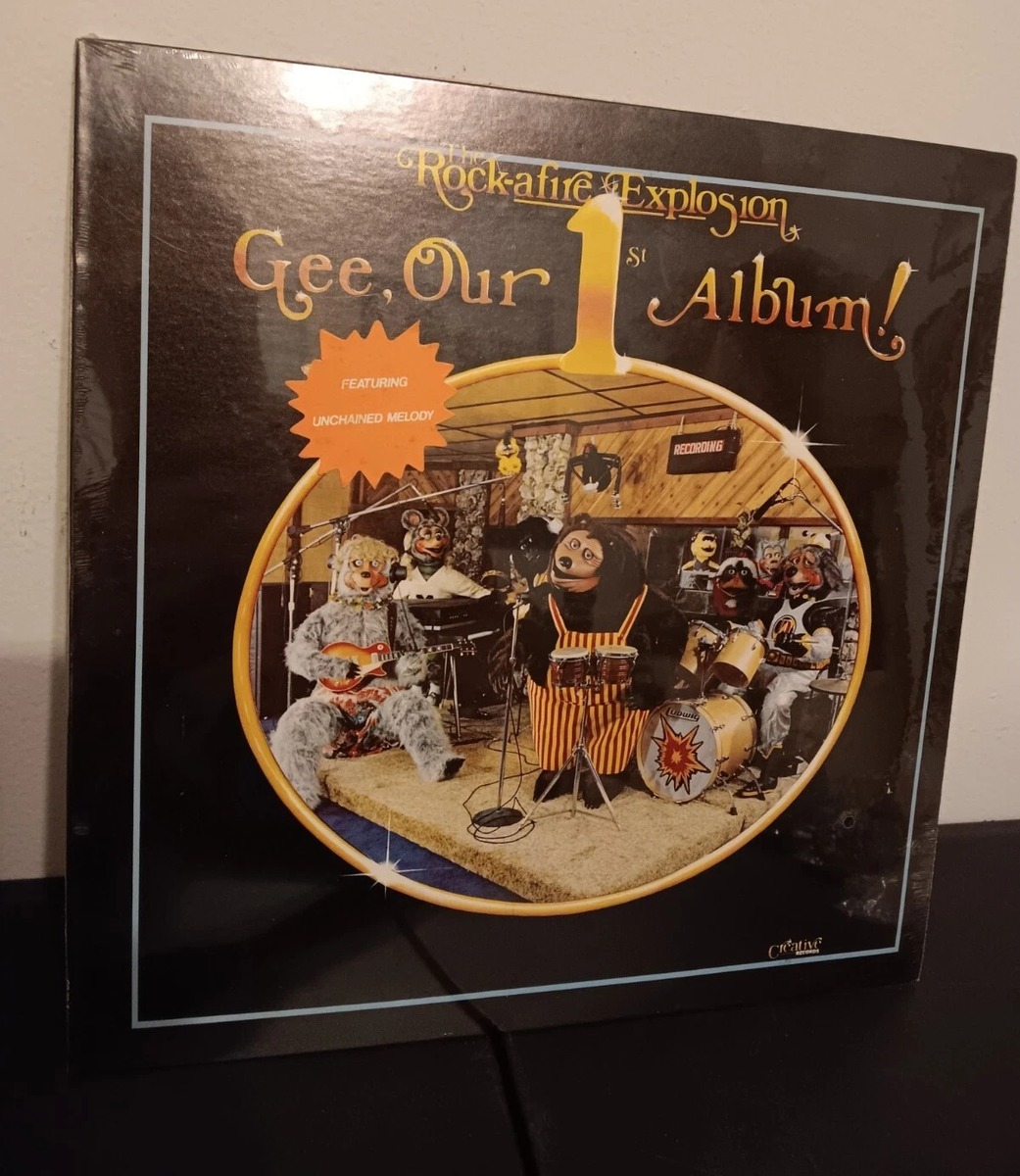 OBOThis is a BRAND- NEW, NEVER OPENED LP for Gee, our 1st Album by The Rock-Afire Explosion This is an original pressing from 1982 still sealed in the shrink-wrap complete with "featuring Unchained Melody" sticker on the front. How do ya like that!? Fans of Showbiz Pizza may remember some of these covers performed by the animatronic band from way back in the day. Since this has never been opened, I can only assume that the vinyl record inside is in pristine condition, and that all 11 tracks sound EVEN BETTER than what you heard in-person all those years ago. Just take a gander at the featured talent on this record: Bass – Billy Bob Brockali Drums, Vocals – Dook LaRue Guitar, Vocals – Beach Bear Keyboards, Lead Vocals – Fatz Geronimo Mastered By – Mike Fuller Vocals – Looney Bird, Mitzi Mozzarella Relive the magic and excitement of Showbiz Pizza Palace by purchasing this vinyl and giving it a spin today! (Buyer must provide their own pizza for full experience) Please let me know if you would like any more information or would like to see additional photos. Thanks!
