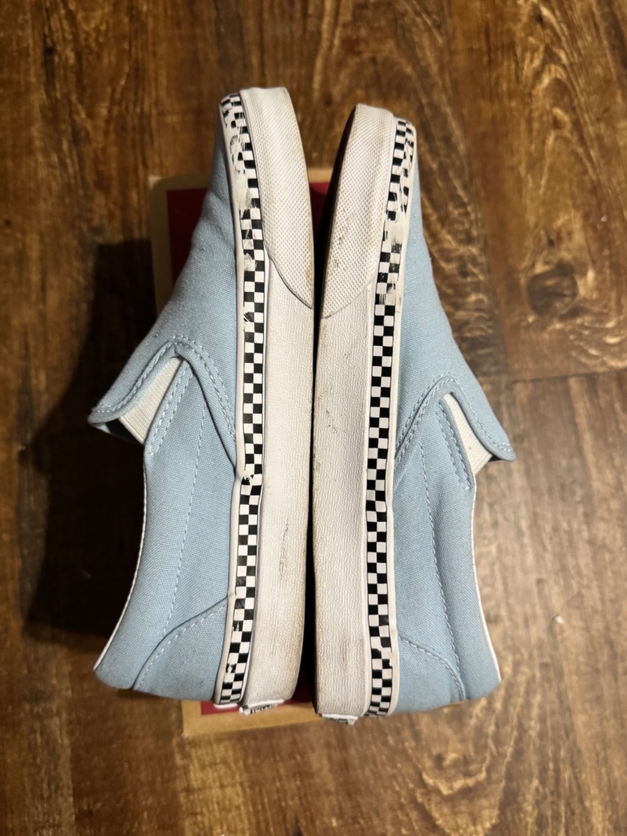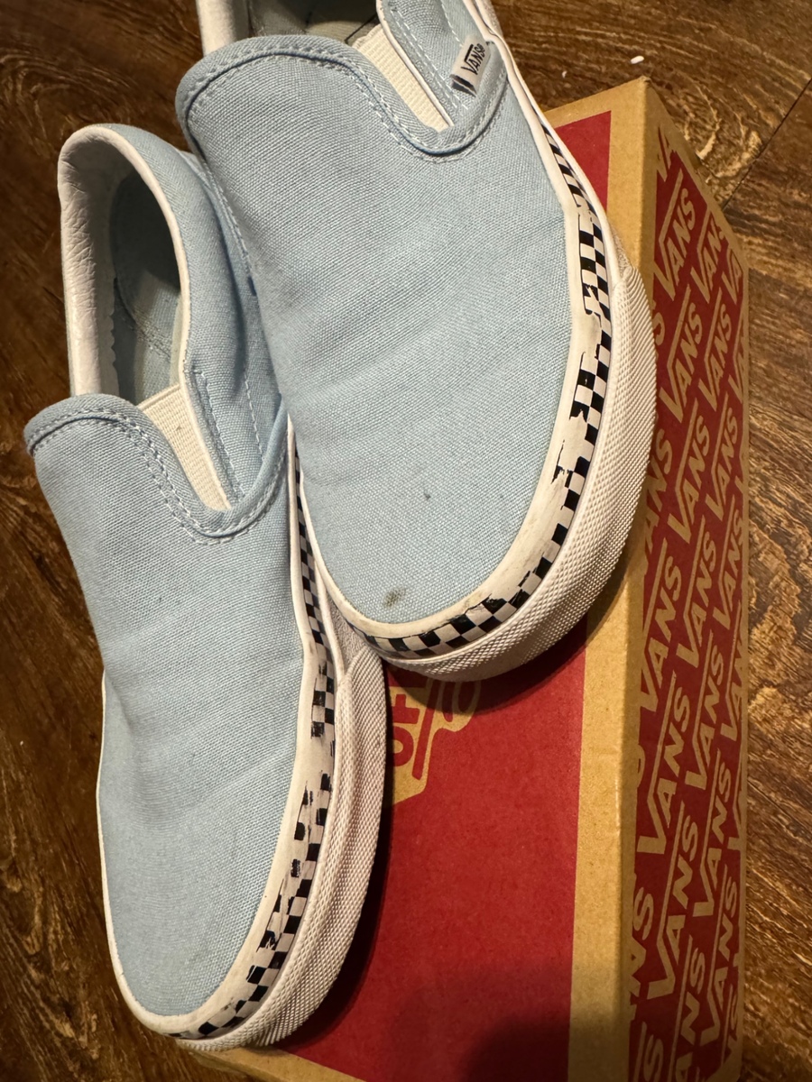 Vans. Blue checkered rim slip ons