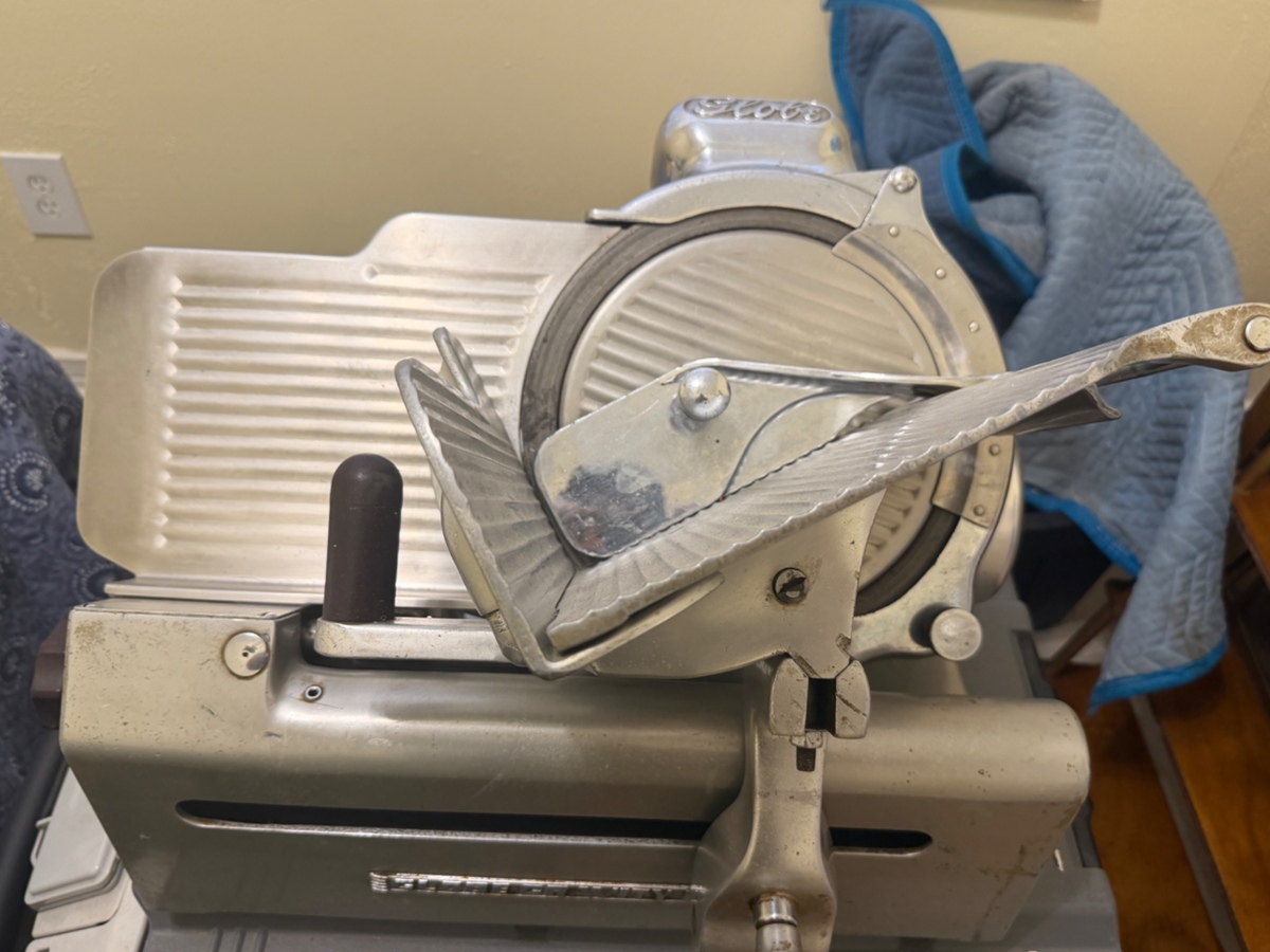 $400.00 75% off OBOThis vintage meat slicer is in good working condition, perfect for those who appreciate retro kitchenware. It features a sturdy design and sharp blade ideal for slicing meats and cheeses. Some signs of wear are present, but it remains fully functional and reliable for everyday use.