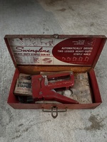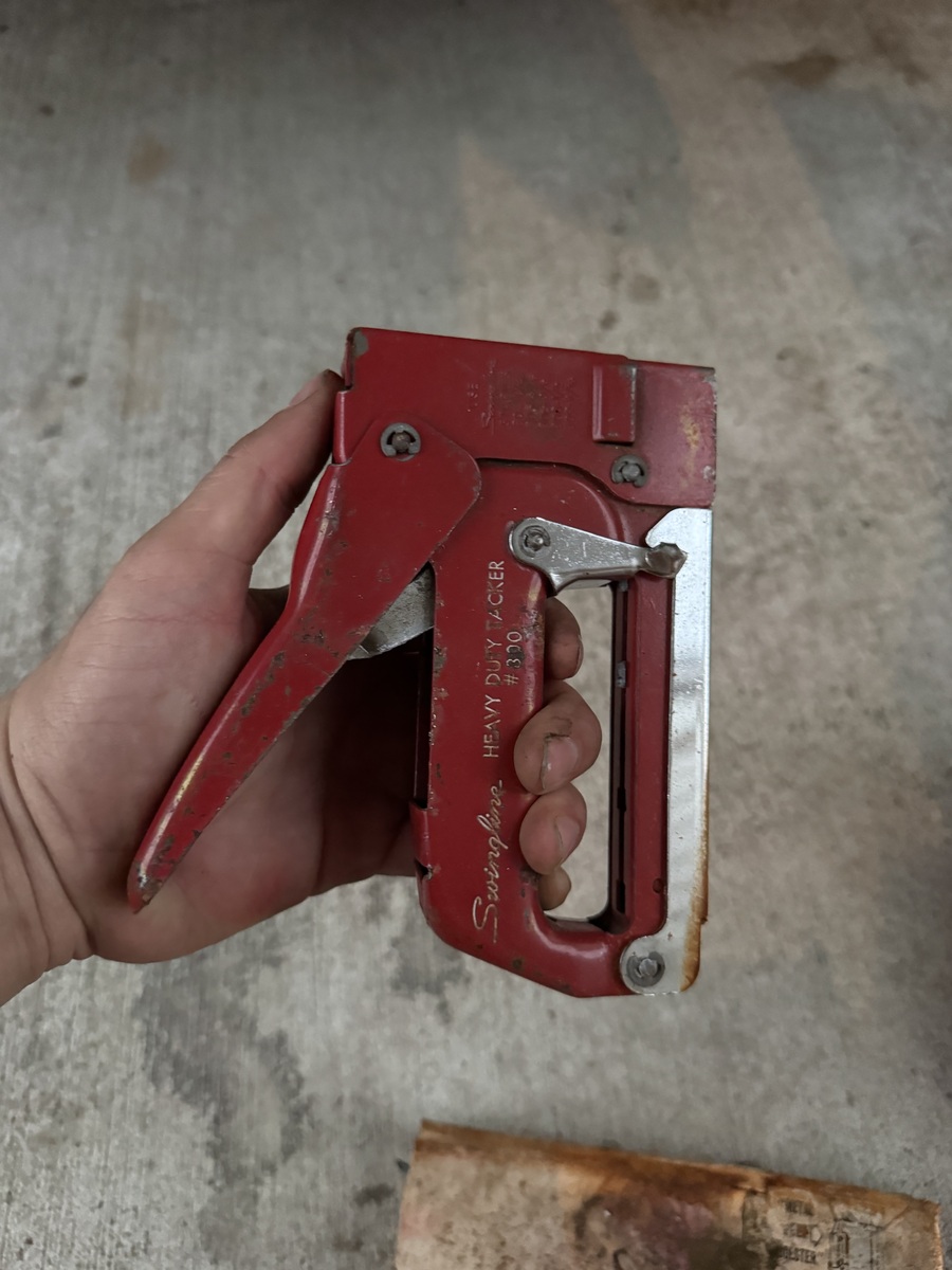 Real old school staple gun. Vintage and from a long time ago.