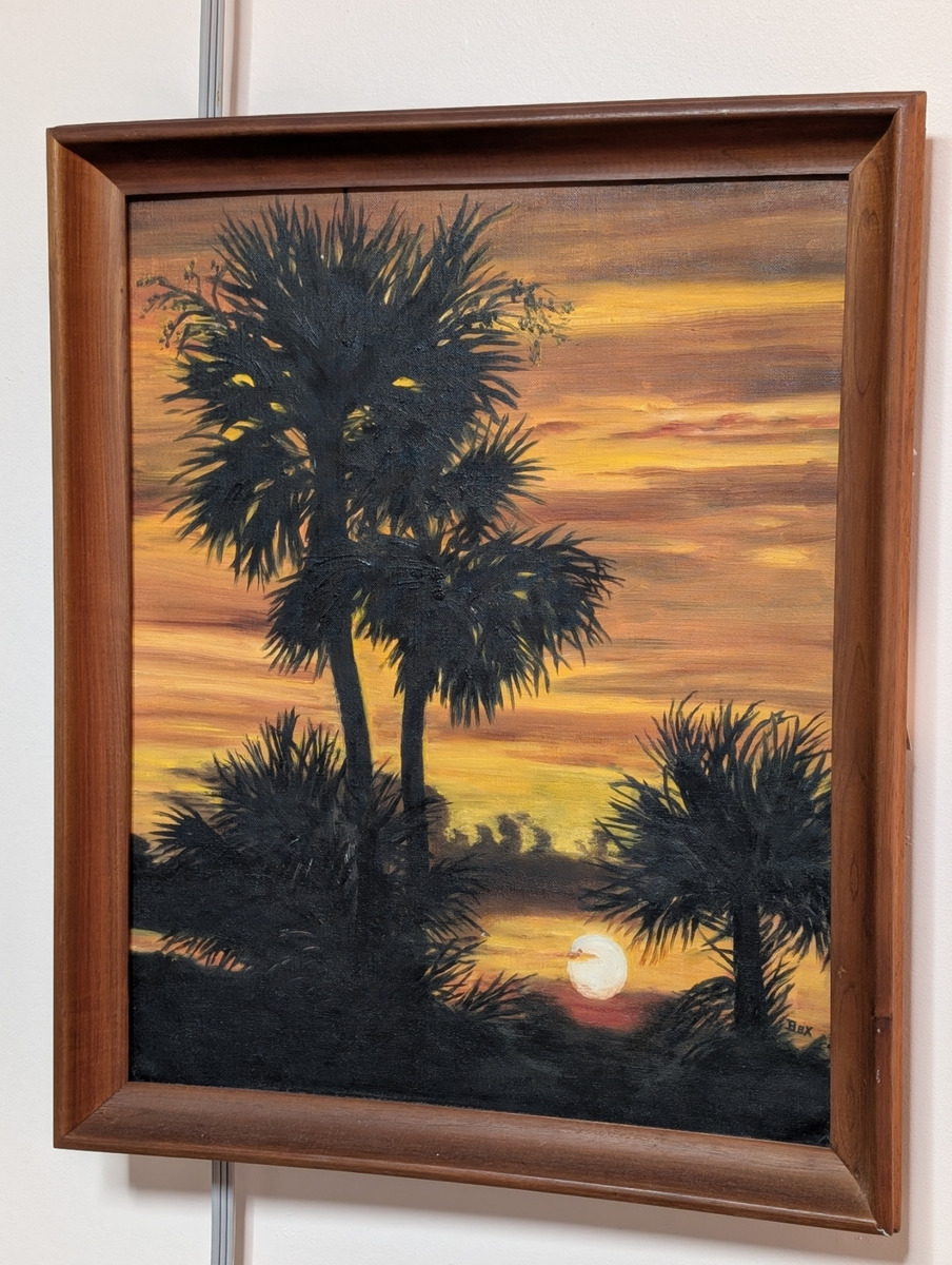 OBOThis is a very fun painting of a tropical sunset by Rex Ramsey. 18" wide x 23" tall in a nice wooden frame. Would be a great addition to your tiki bar or lounge room. $40 includes delivery anywhere on the South Shore of the Greater New Orleans area. Lower offers considered if picking up in Gretna.