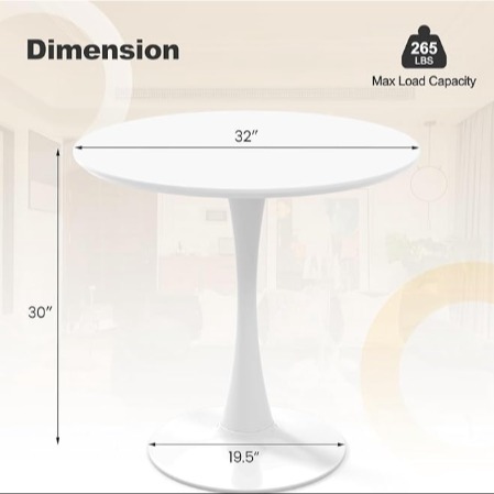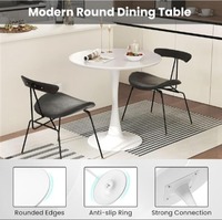 White Round Dining Table, 32-inches Modern Tulip Kitchen Table with 0.9” Thickened Tabletop