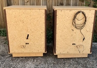 Pair of Bozak B-302A Century speakers in new cabinets built to Bozak’s specs. Excellent working condition. Each unit includes a B-199A (1959) , B-200x aluminum tweeters, B209 mid range (1962), N-10102 crossover, and original hardware / wires. New Cabinets and insulation. Each cabinet has 4 low profile metal caster wheels underneath. Measures approximately 31.5” x 23.5” x 16.25”