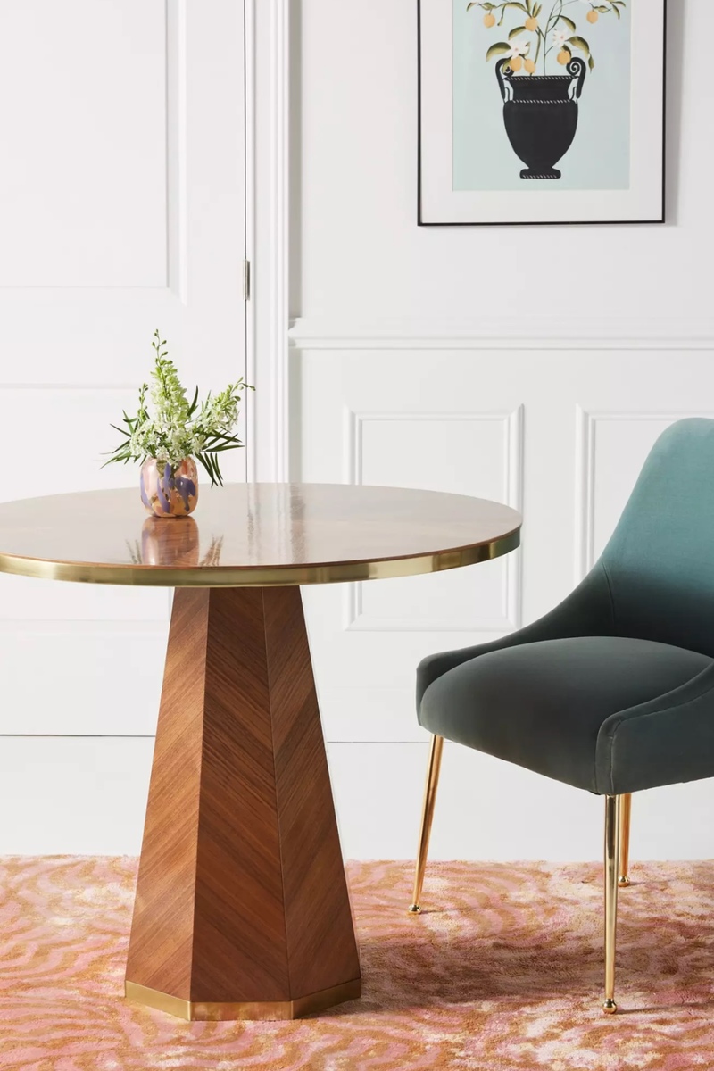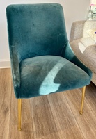 OBOColor: Marine Overall: 34.25”H, 24”W, 24.25”D Seat Height: 19.75” Seat Depth: 16.75” Leg Height: 13.75” Antropologie Velvet Elowen Chair (2 available) Plush velvet upholstery Polished brass legs Owned for 2 years. Gently used, very good condition. See photos.