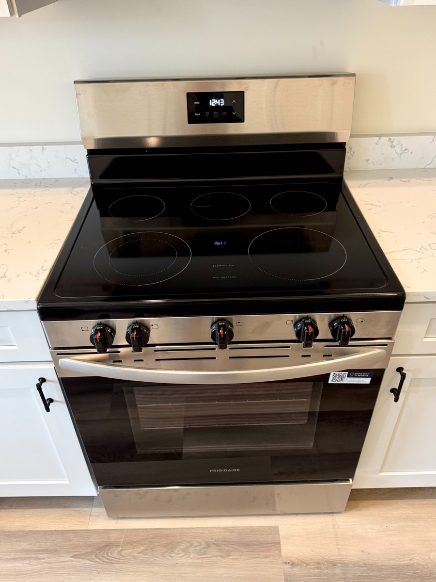 Selling a Frigidaire electric range that was installed but never used. It came with a new construction property and was never powered on or cooked with — essentially new.