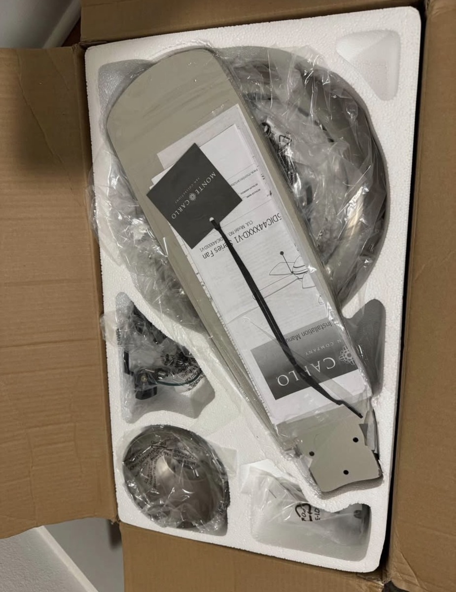 Brand new ceiling fan still in the box. Really nice just too late to return it. Bought online.