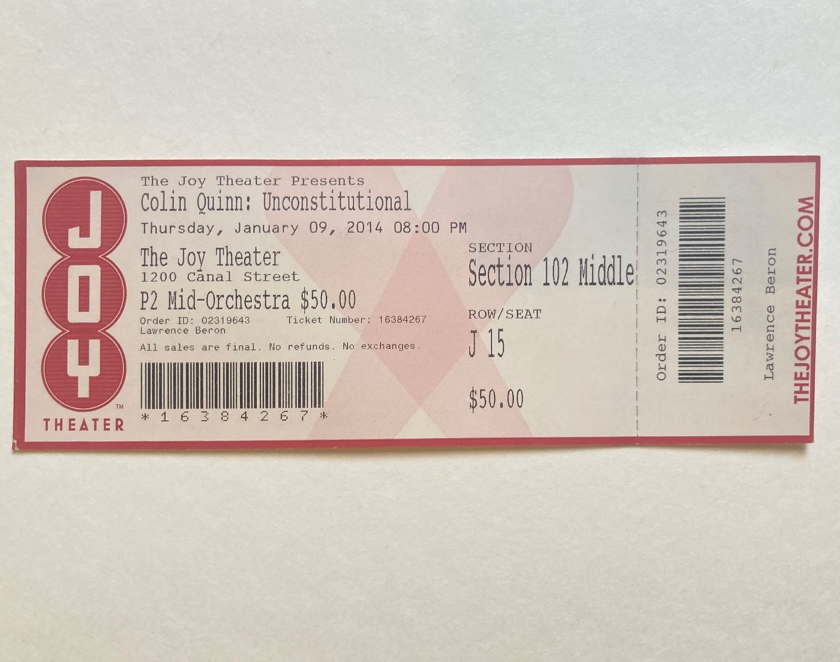 Collin Quinn Comedy Stand-Up Ticket Stub