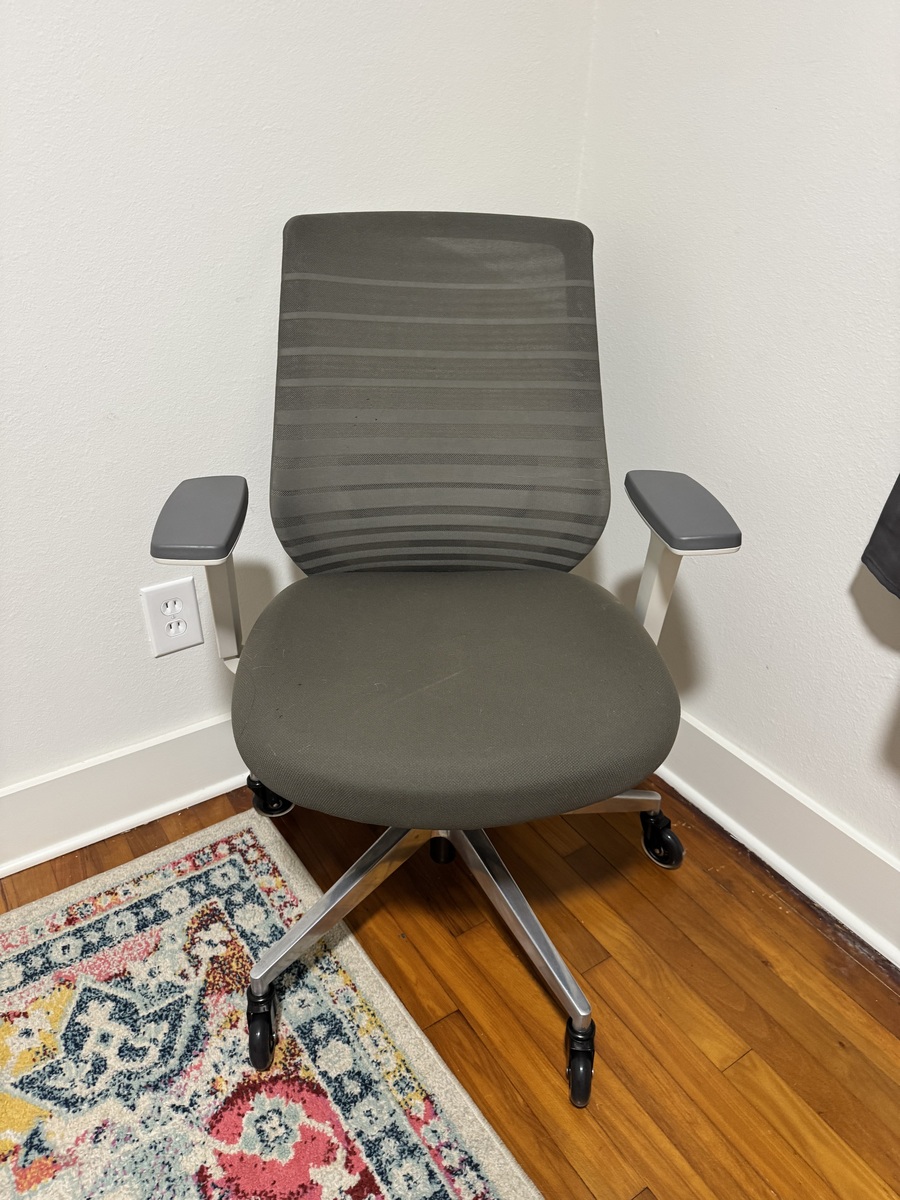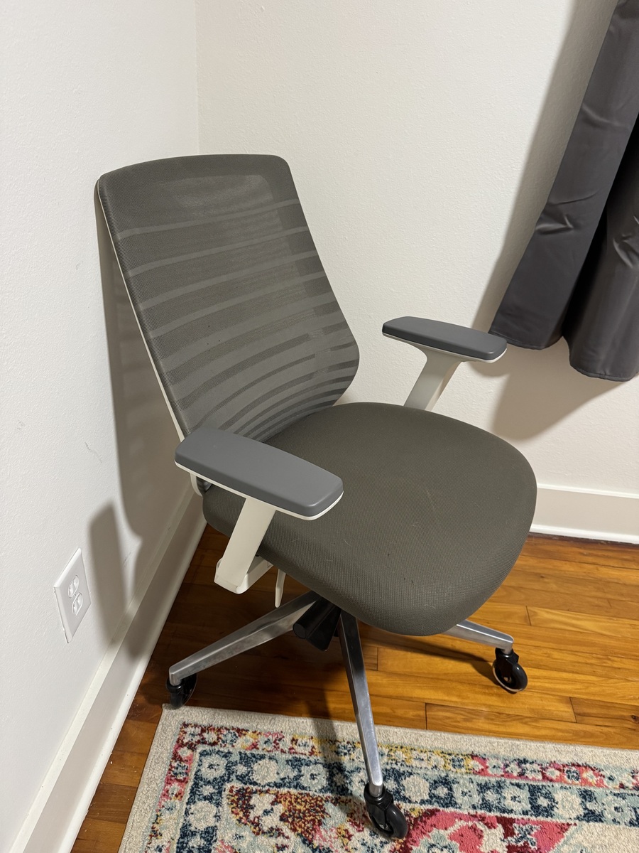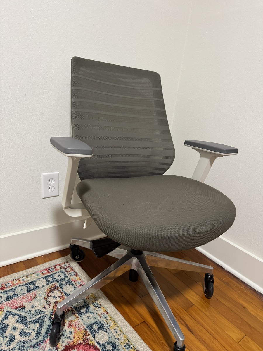 OBOSelling this really comfortable ergonomic office chair by Donati. It has multiple configurations and every part of it can be adjusted. Nice thick cushion seat. In a pebble grey color. I got rid of my desk so I no longer have a use for the chair. This chair retails for $400 to $500 brand new. From a pet free smoke free home. Can also deliver within reason.