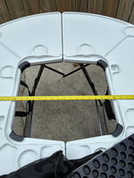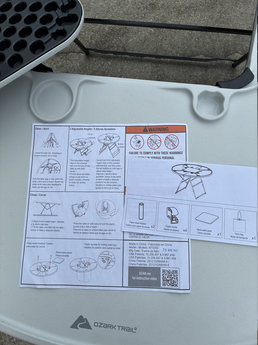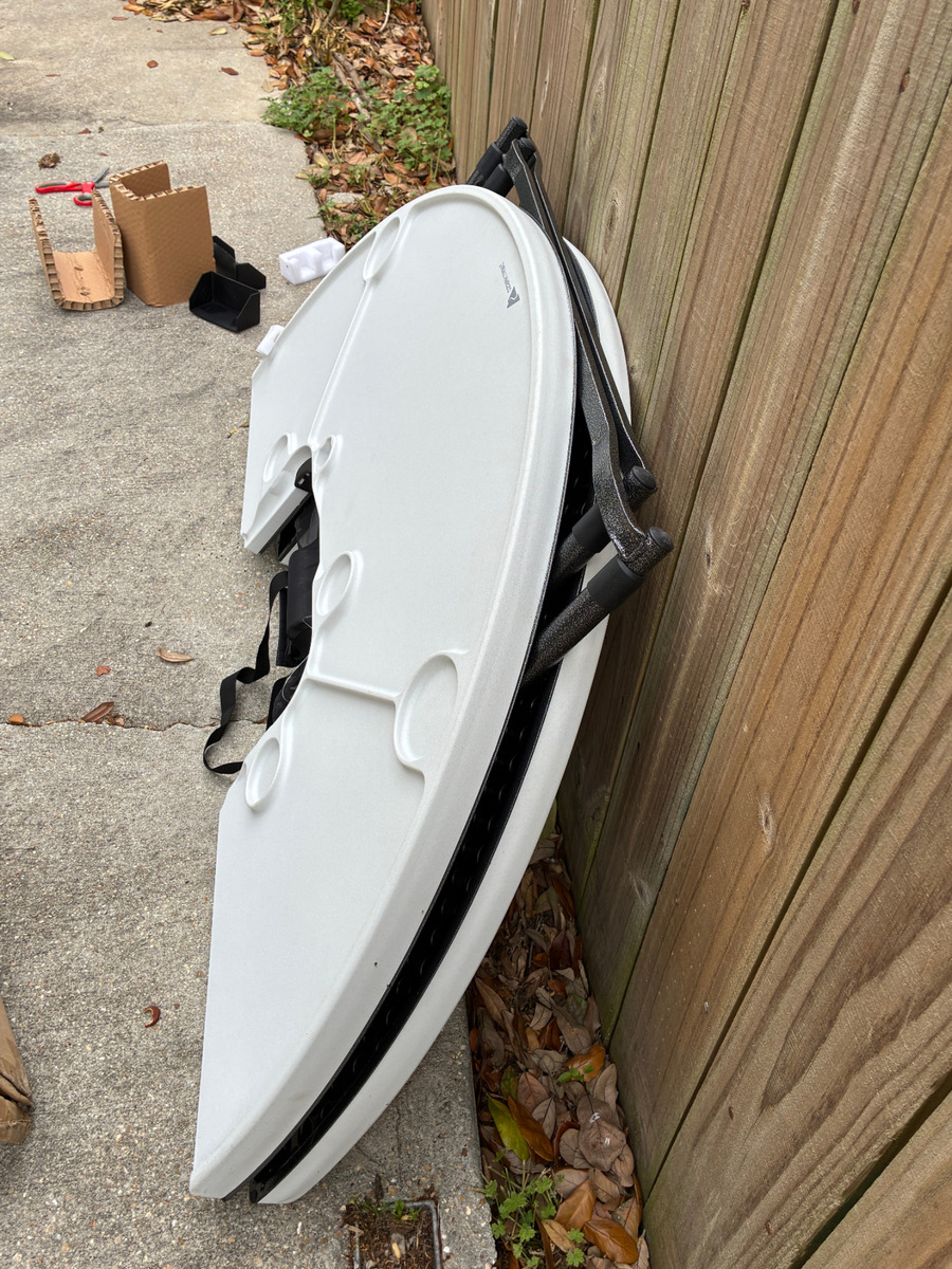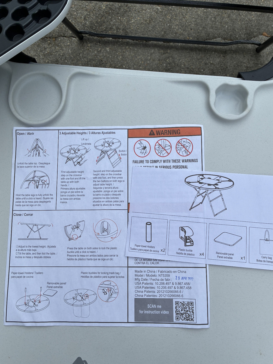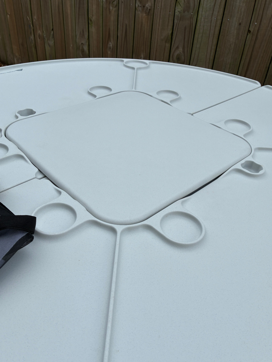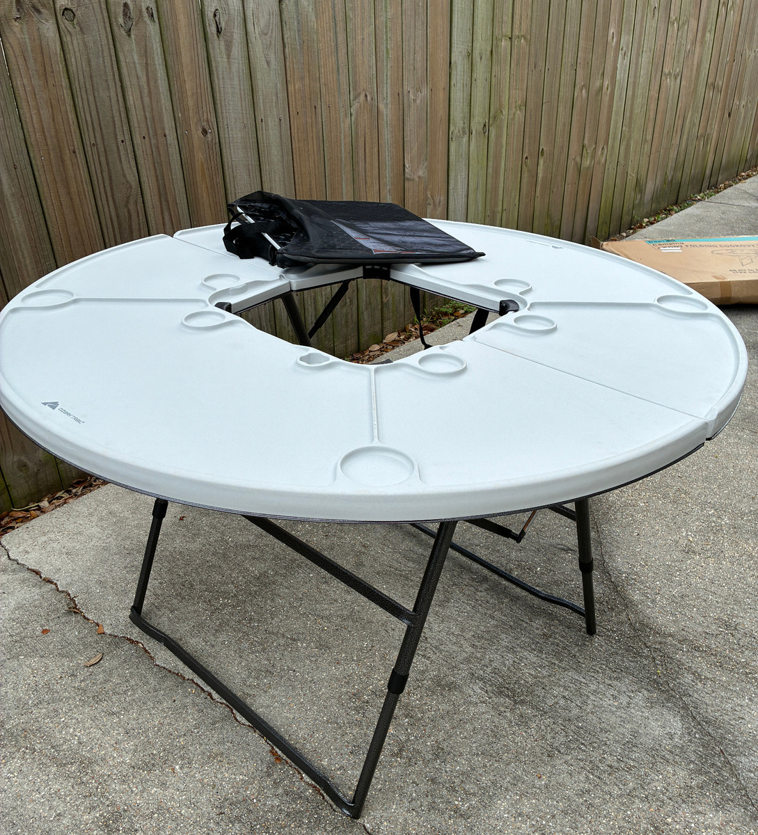 $89.00 16% off OBODurable white plastic folding table with sturdy metal legs and integrated cup holders. It is perfect for outdoor gatherings, easy to set up, and store. Ideal for backyard parties, camping, and sports events. New*Open Box-Taken out of box for inspection and photos.