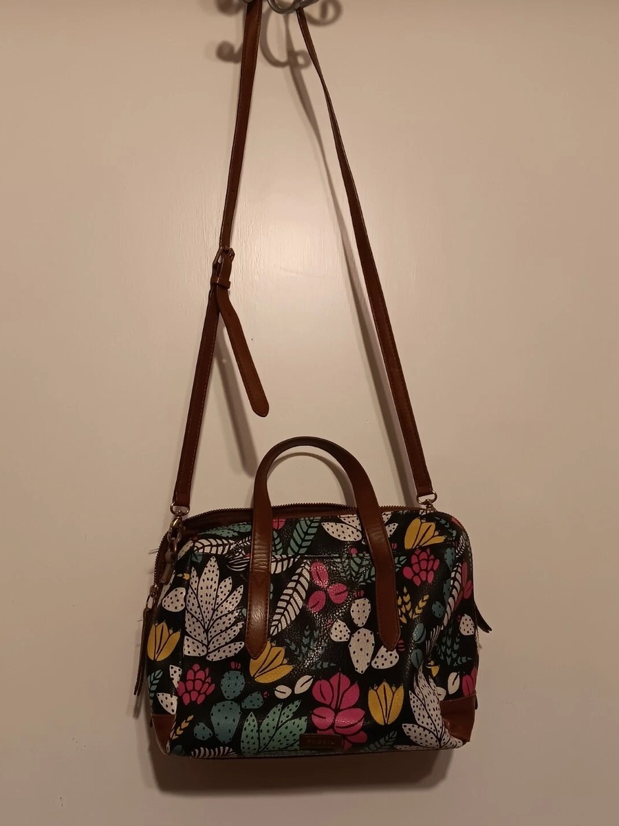 Fossil Fiona Satchel Dark Floral Crossbody/2 Handle Purse