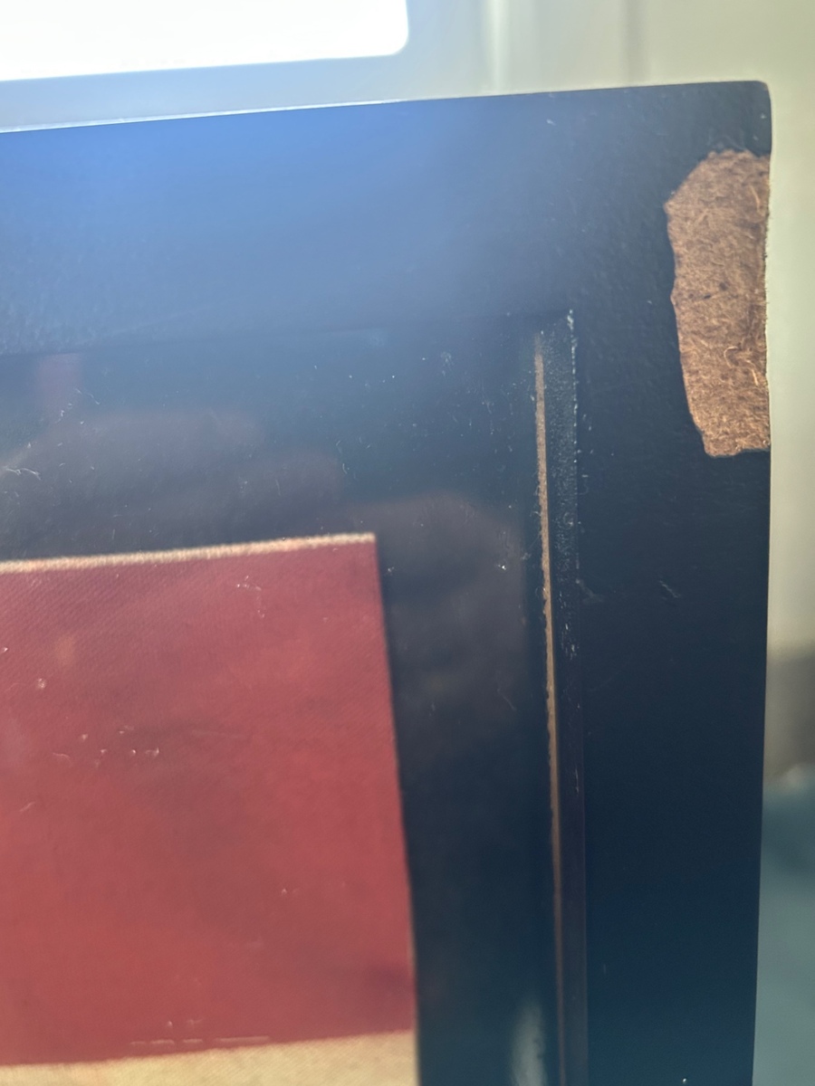 Framed vintage flag Black frame corner damaged in move. Could be repaired with wood filler or furniture marker. Flag and mounting still in excellent condition. 42.5 x 34 cm $10 obo