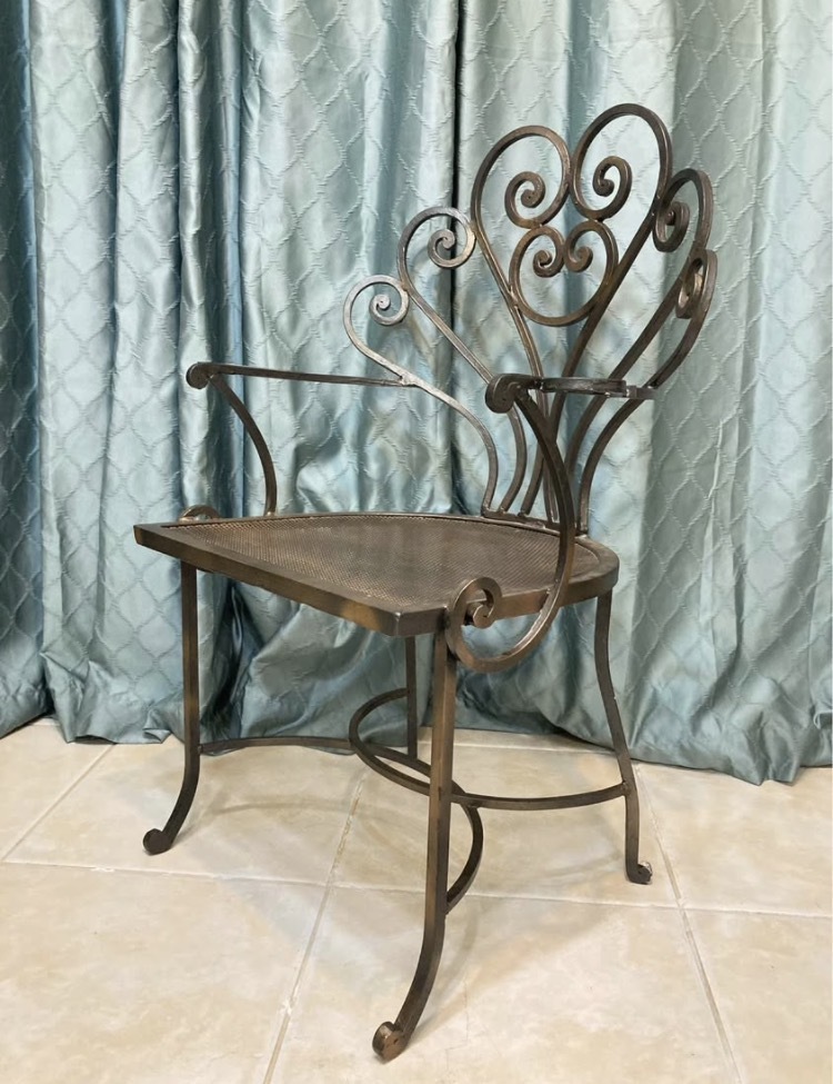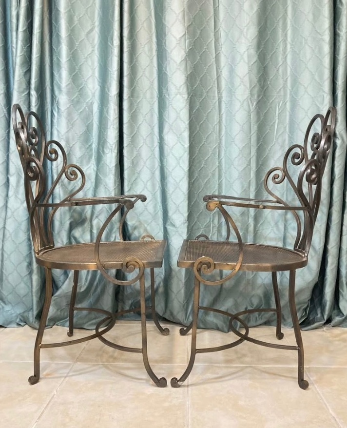 Vintage wrought iron arm chairs