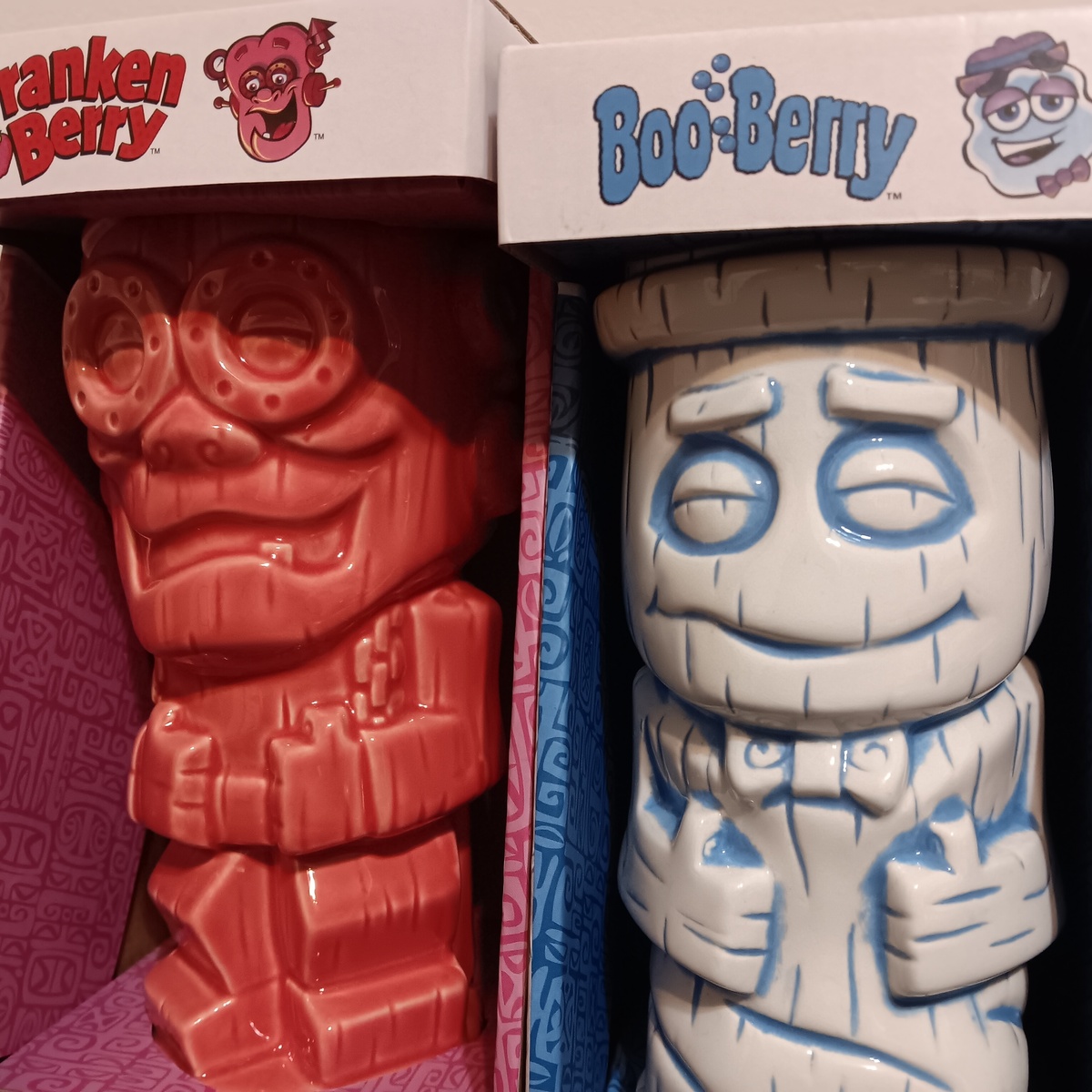 OBOMicrowave and Disgwasher safe tiki mugs Boo Berry and Franken Berry. Count Chocula is still at large. $15 for both! Use these mugs to create your own tiki drinks in the comfort of your own home since you forgot to make a reservation at Latitude 29!!