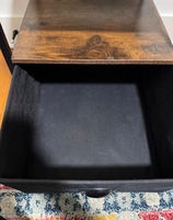 This brown nightstand is in great shape and fully functional. It has a nice deep cloth drawer that offers plenty of storage. There is one small chip on a corner, but it doesn’t affect use and everything else is perfectly fine. Originally purchased on Amazon. Dimensions: • Width: 16” • Depth: 16” • Height: 19” Sturdy, compact, and perfect for bedside storage or small spaces.