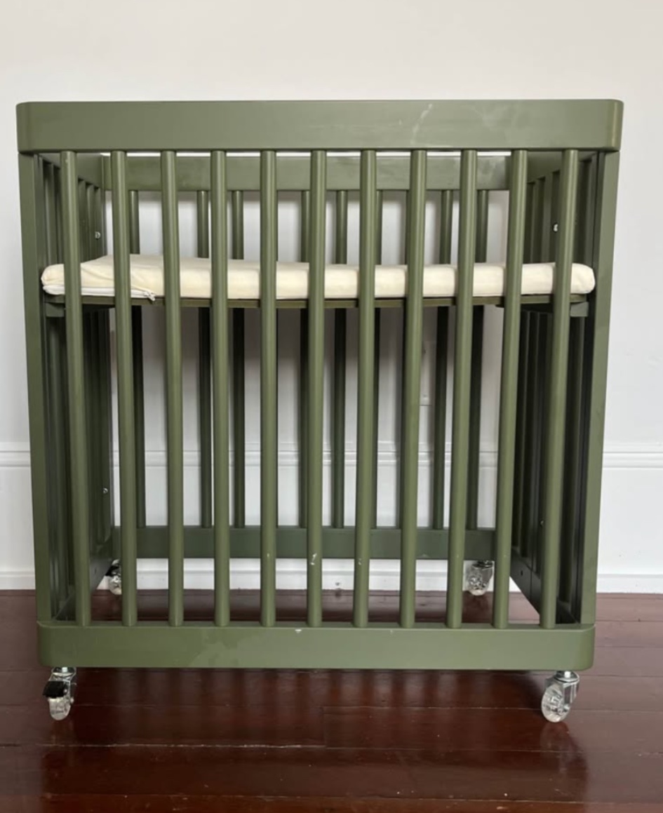 8-in-1 Convertible Crib with All-Stages Conversion Kits This was on our registry and cost $800. I bought it because it’s eco-friendly and can grow with the baby! Turns out we are co- sleeping and not in need of a crib. Offering $600 willing to negotiate but not much lower. NEVER USED!! Only assembled!! Serial number is below, serious requests only, cash only. Thank you! Serial number: HS0243262501 INFO FROM BABYLETTO WEBSITE: Pogo Converts 8 ways with all conversions kits included (full-size crib mattress sold separately). Bassinet conversion has wheels for portability. Available in a range of colors, from timeless neutrals to bold statement shades. GREENGUARD Gold and FSC® Certified to ensure a healthy future for your babe The Pogo crib seamlessly transforms from bassinet to our transitional midi size and then to a standard crib and junior bed, with all conversion kits included. Choose from two mattress heights and configurations in each size. Featuring stylish rounded spindles, gently curved corners and posts, the Pogo is made with 100% sustainable New Zealand pine wood and certified GREENGUARD Gold for your baby's safety. Features GROWS AT THEIR PACE & ADAPTS TO YOUR SPACE: Transitions from bassinet (30”x19.5”x34.75”) to our transitional midi size (37.75”x31”x35.25”) and to standard crib & junior bed. Suitable from newborn to 5 y/o. VERSATILE MODERN DESIGN: With its clean lines and curved edges, Pogo makes for a stylish and sophisticated piece for the modern nursery. Our hidden hardware construction eliminates visible screws on the crib’s exterior for a polished, clean look. Plus, its low-profile design allows you to easily reach for or set down your sleeping babe. ALL-STAGES® 8-IN-1 CONVERTIBILITY: The patent-pending Pogo Crib has been engineered to grow at your little one’s pace and adapt to your space. Choose from 8 conversions across 3 unique sizes to fit your family & home: bassinet, midi crib, midi toddler bed, midi daybed, standard crib, toddler bed, daybed, and junior bed. PORTABLE & ADJUSTABLE HEIGHT: Glides easily from room to room on removable locking caster wheels in the bassinet stage. As your babe grows, adjust between two mattress height options for each of the Pogo crib stages. CONSCIOUSLY CRAFTED & SAFE FOR BABE: We’re about style and substance. Pogo 8-in-1 crib is thoughtfully crafted with 100% sustainably sourced New Zealand pine wood, one of the most renewable woods available. Bassinet and midi mattress supports are TSCA compliant engineered wood. Finished in a non-toxic multi-step painting and staining process that is lead and phthalate safe, Pogo exceeds ASTM International and U.S. CPSC safety standards. GREENGUARD GOLD CERTIFIED: Pogo has been tested for over 10,000 chemical emissions and VOCs, undergoing rigorous scientific testing to meet some of the world's most stringent chemical emissions requirements. It contributes to cleaner indoor air, creating a healthier environment for your baby to sleep, play, and grow. FSC ® CERTIFIED WOOD: Wood used in this crib comes from well-managed, FSC®-certified forests. The FSC® label means that wood has been harvested to benefit communities, wildlife, and the environment. WHAT'S INCLUDED: Everything but the crib mattress! In one unassuming but mighty box, you’ll find all the hardware and parts needed to convert to any and all stages, plus a 1” bassinet pad & custom 2” midi pad (note: not a standard mini crib size) SOLD SEPARATELY: A standard crib mattress and all the sheets designed to fit your crib. For extra support in the midi stage, we recommend the Babyletto 4" Pure Core Midi Crib Mattress (M5397C). UNIQUELY YOURS: Due to the organic beauty of natural wood grain, each babyletto item featuring a stained wood finish is a unique masterpiece. Natural variations in color and grain make every item distinct, ensuring yours is truly one‑of‑a‑kind. Model: M29880BD Country of Origin: Taiwan (R.O.C.) DIMENSIONS Assembled Dimensions: 54"L x 31"W x 35.25"H Assembled Weight: 75.1lbs Slat Strength: 135 lbs Front Rail to Floor Height: 35.1" Interior Crib Measurements: 52"L x 28"W MAXIMUM WEIGHT 50 lbs