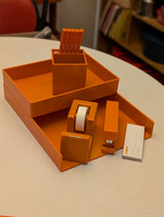 This is a "12 Piece" straight out of the packaging, like new "poppin" desk set, with everything you see pictured, in a vibrant "cyber-era" orange. Pens all still have their plastic tip protector, except for one which I removed to test it. Price includes delivery to anywhere on the South Shore of the Greater New Orleans area. Will consider lower offers for pickup in Gretna. Thank you!