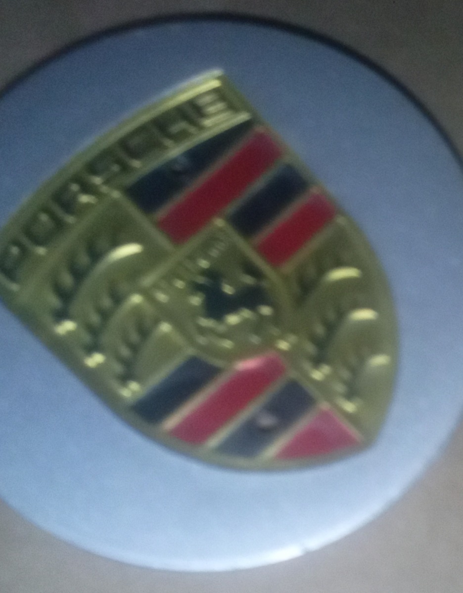 OBOA genuine Porsche wheel center cap featuring the iconic logo. It has some signs of wear, making it perfect for a project car or replacement part. A great collector's item for Porsche enthusiasts.