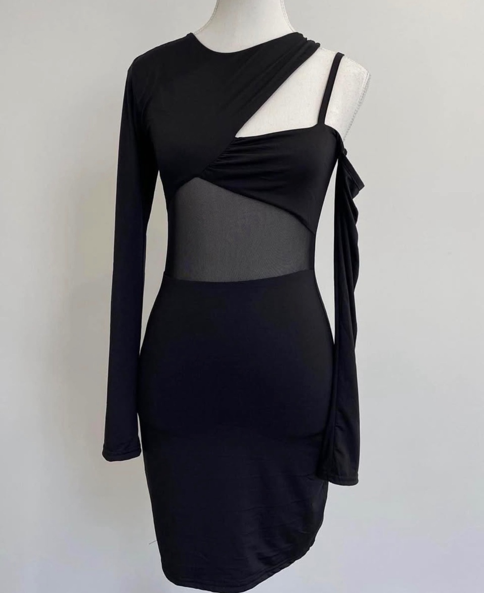 Slinky One Shoulder Mesh Dress