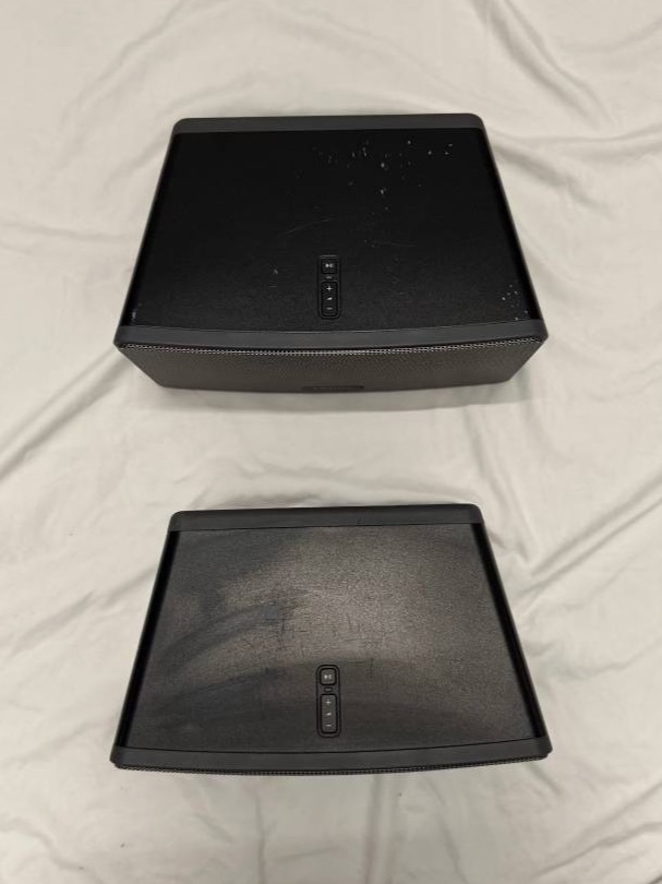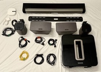 Full Surround System - items discounted for bundle but individual prices see below x2 Play:1 = $280 x2 Play:3 = $180 x1 Subwoofer = $450 x1 Playbar = $280 x1 Sonos Boost = $40 All powercables included. Playbar and Play:1's will come with wall mounts included. Notes: Play:3 - Both work perfectly. Cosmetically they show scuffs and surface marks on the top panel (shown in photos), which is reflected in the price. Sub - Gen 2 in full working order. Deep, room-shaking bass. Cosmetic scratches on the glossy exterior BACK SIDE ONLY (shown in photos), but performance is flawless. Thanks!