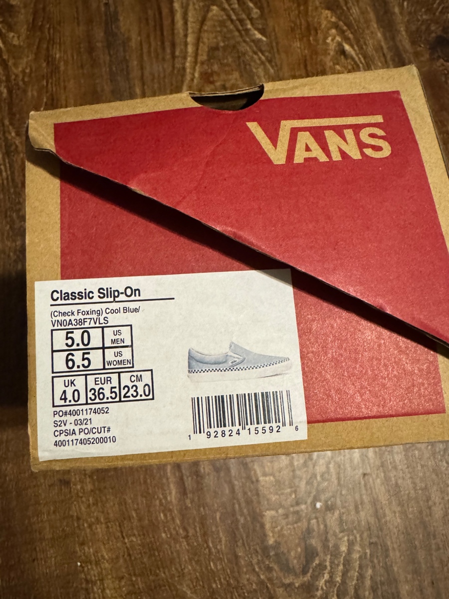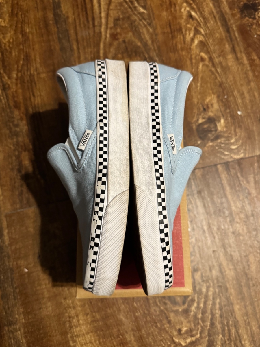 Vans. Blue checkered rim slip ons