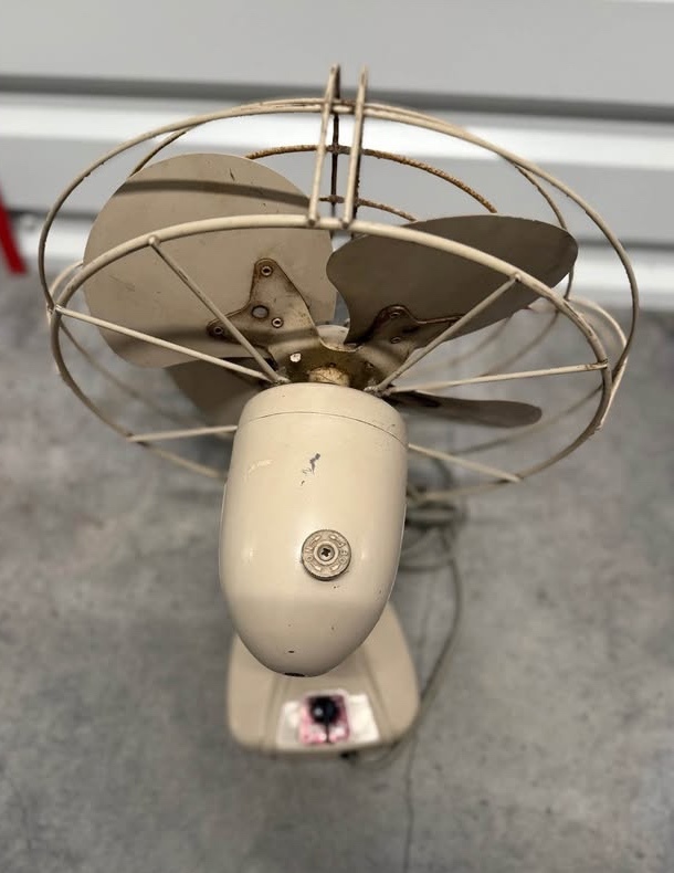Vintage Metal Oscillating Fan – Cream Beige – Mid-Century Industrial Decor