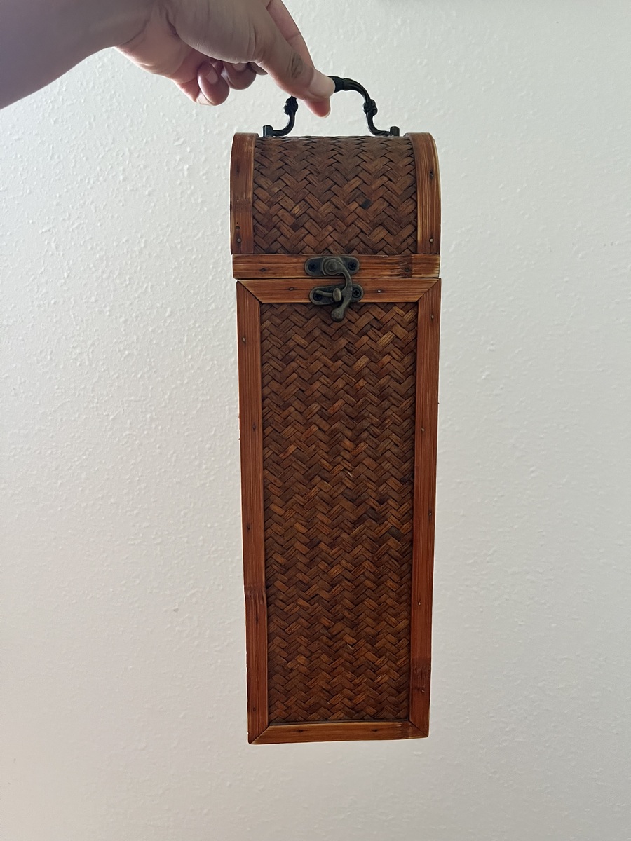 Vintage wicker picnic basket for wine/bottles. Cute handle and lock that are in great condition. Easy to carry for a sweet picnic, day in the park, or to store your bottles beautifully at home. Fits a majority of bottle typesy. Can also be used as a flower vase(insert water glass), general decor, etc. Please message me with pickup / delivery plan (: Thanks!